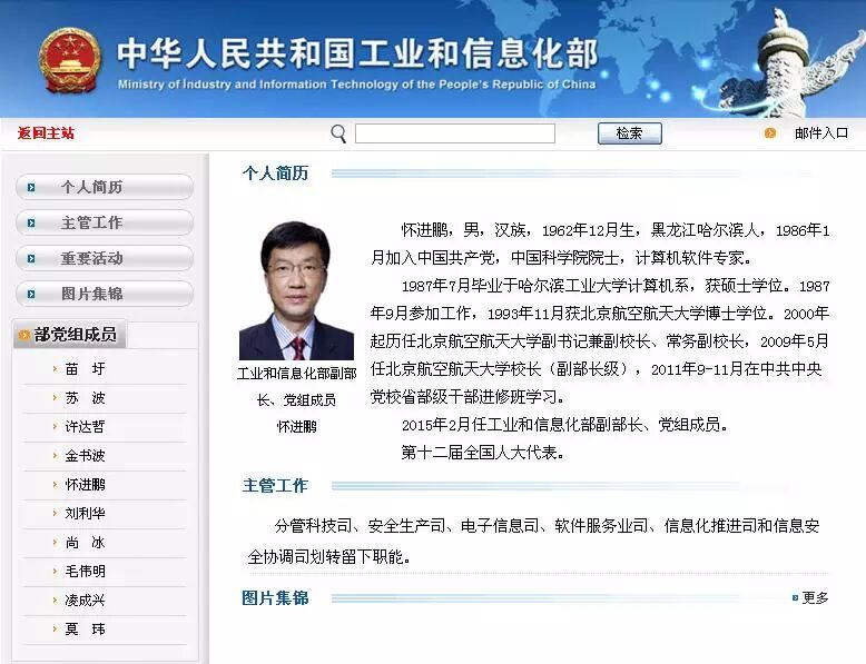 工信部网站近日披露,北京航空航天大学校长怀进鹏院士,已于今年2月份担任工信部副部长、党组成员。