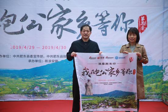 4月29日上午9:30, “我在包公家乡等你”浪客肥东行第三季启动仪式在桥头集镇举行。肥东县委常委、宣传部长许高彬、肥东县委宣传部副部长许泽夫、新浪安徽总编辑王成丽、安徽省作家协会主席、安徽省文联副主席许辉等出席了启动仪式,并分别为本次活动致辞。肥东县委常委、宣传部长许高彬向新浪安徽授予“浪客肥东行”活动旗帜。